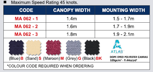 Mobile Preview: 3 Stangen Bimini "Oceansouth" Breite 190-210cm
