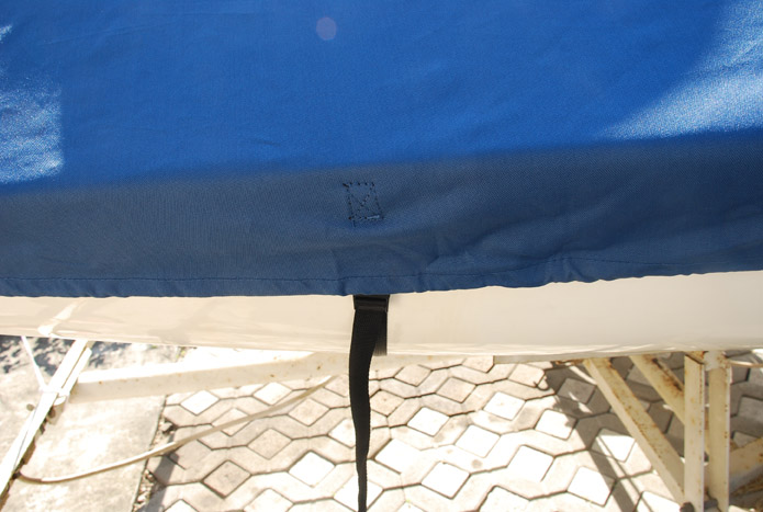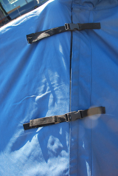 Das Material ist UV stabilisiert und sehr robust. Jede Persenning hat eine eingearbeitete Leine, die hinten zugezogen wird. Wir benutzen sehr robuste Schnallen und Gurtbänder die zur Abspannung dienen. An allen wesentlichen Scheuerstellen sind zusätzliche Verstärkungen angebracht. An Verbindungsstellen ohne große Zugkraft sind Klettverschlüsse eingenäht. Dort wo Zugkräfte wirken, sind zusätzlich Gurtschnallen angebracht.