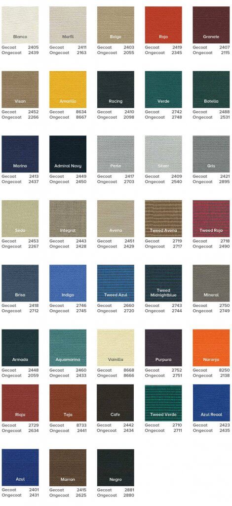 Das Tuch wird aus Sunbrella oder Sauleda hergestellt. Unten finden Sie die verfügbaren Farben. Sollte das gewünschte Material oder die Farbe nicht aufgelistet sein, so fragen Sie bitte bei uns an.