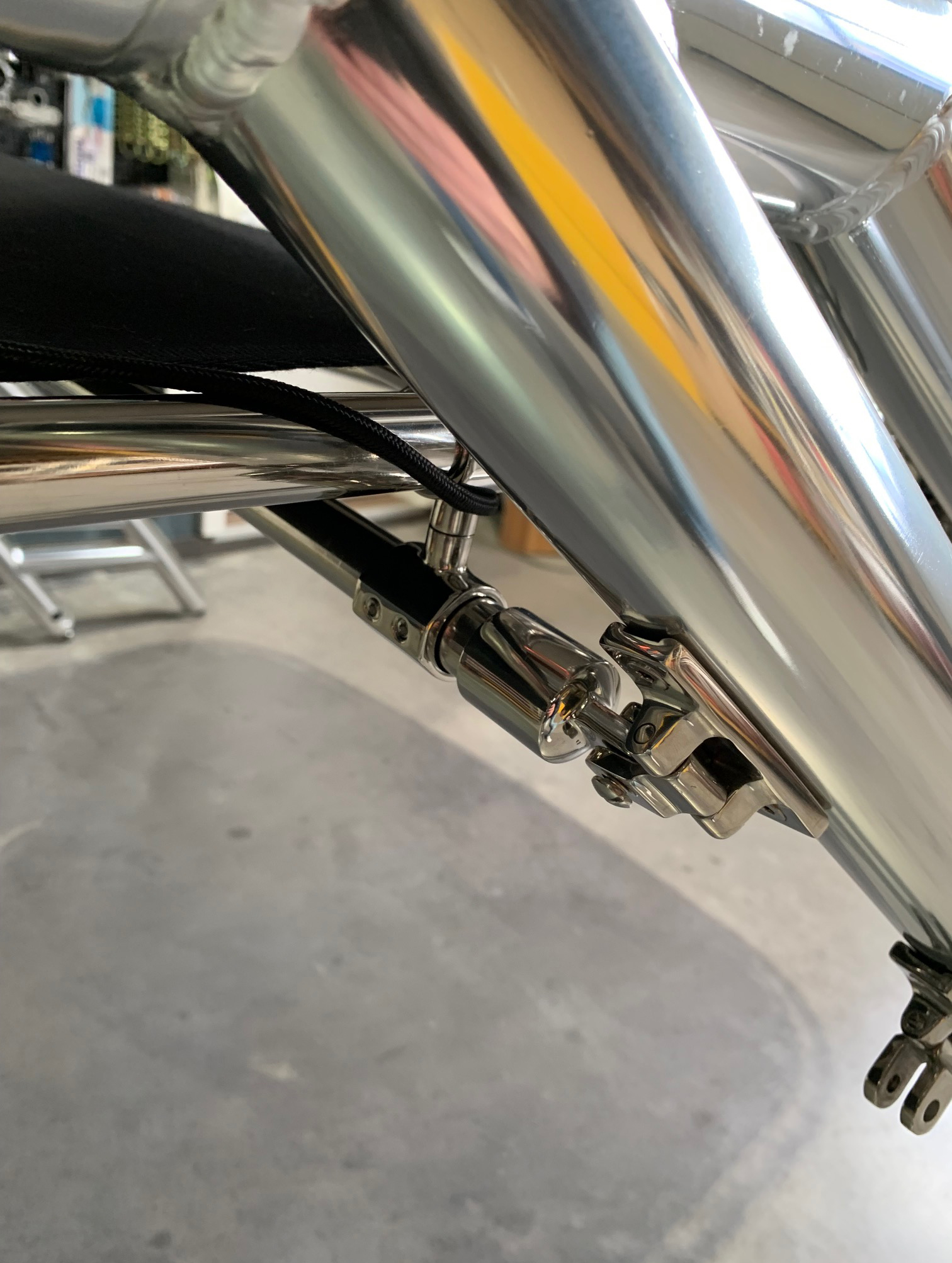 Das Gestell des Biminis ist aus 22mm Edelstahlrohr gefertigt. Alle Beschläge sind auch aus Edelstahl.